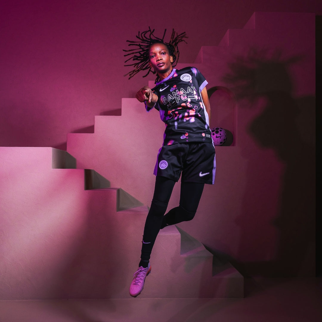 Returning to the original vision that shaped our identity, the 2025/26 Banaat FC Home Jersey reintroduces our signature lilac and black stripes.