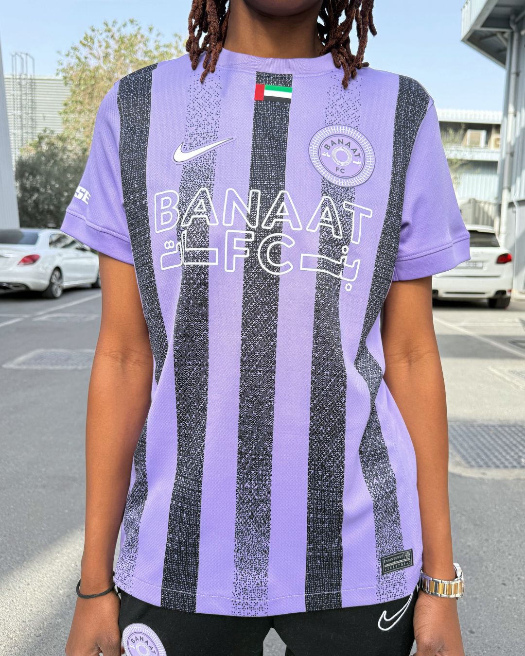 Returning to the original vision that shaped our identity, the 2025/26 Banaat FC Home Jersey reintroduces our signature lilac and black stripes.